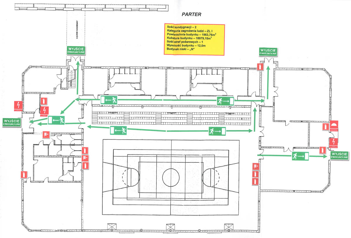 Plan ewakuacji szkoły - SALA GIMNASTYCZNA PARTER