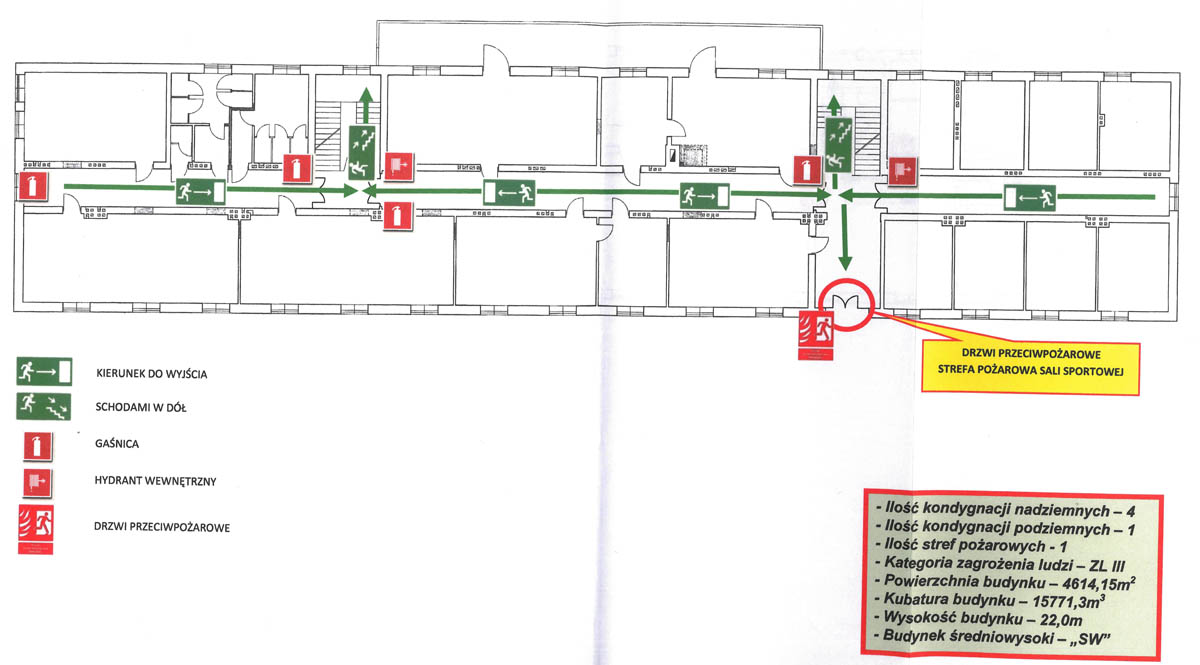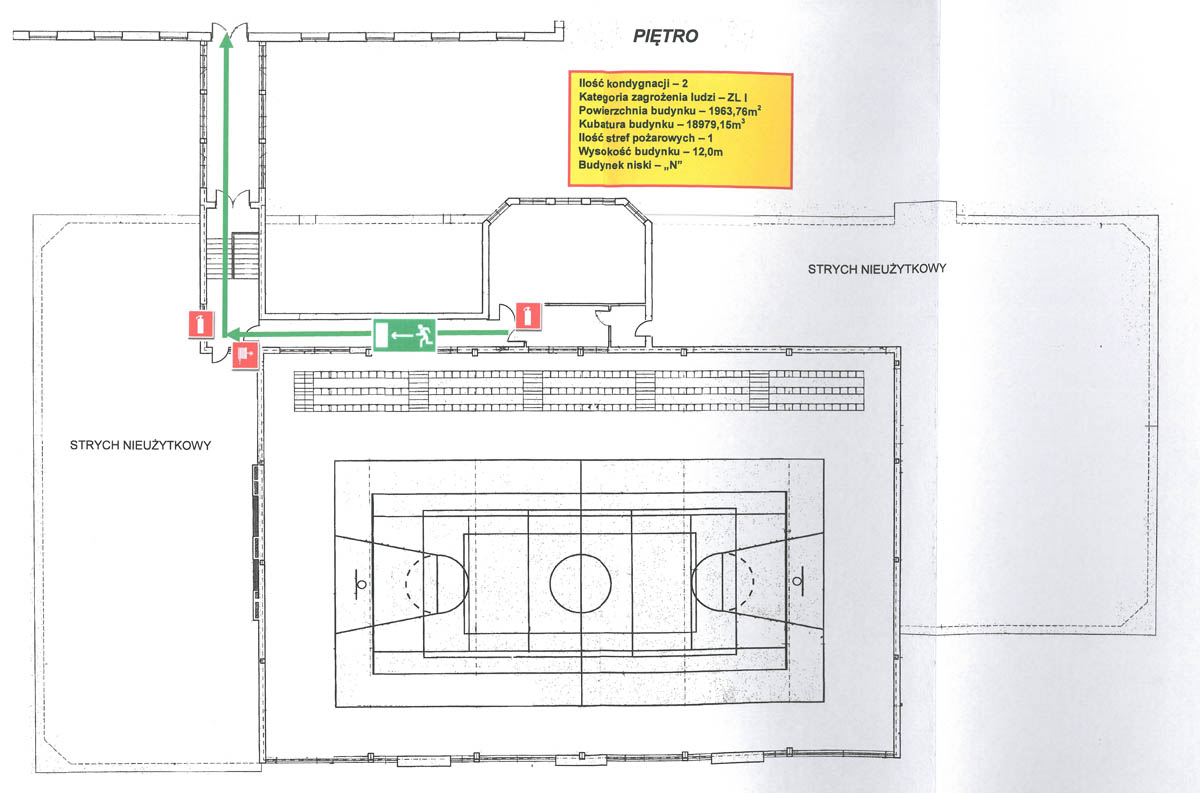 Plan ewakuacji szkoły - SALA GIMNASTYCZNA PIĘTRO