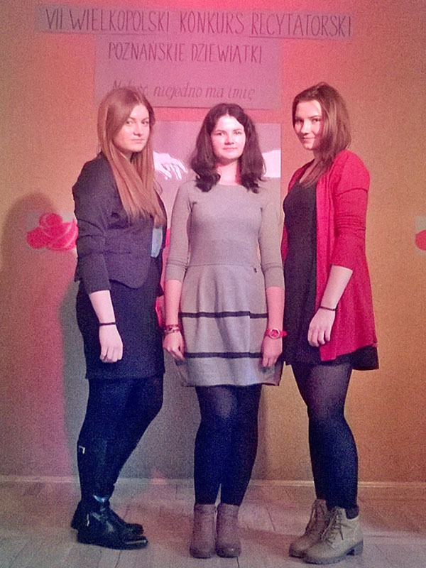 Naszą szkołę reprezentowały zwyciężczynie szkolnego etapu konkursu: Ania Stachowiak – uczennica klasy II LO z przysposobieniem policyjno-prawnym, Karolina Gajewska z klasy III Technikum hotelarstwa oraz Wiktoria Dajewska z klasy I Technikum hotelarstwa.